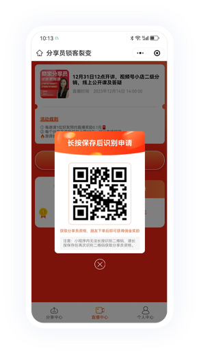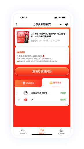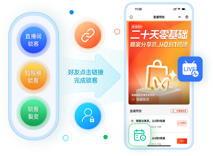分享直播間/短視頻,好友點擊鎖客成功,綁定收益關系